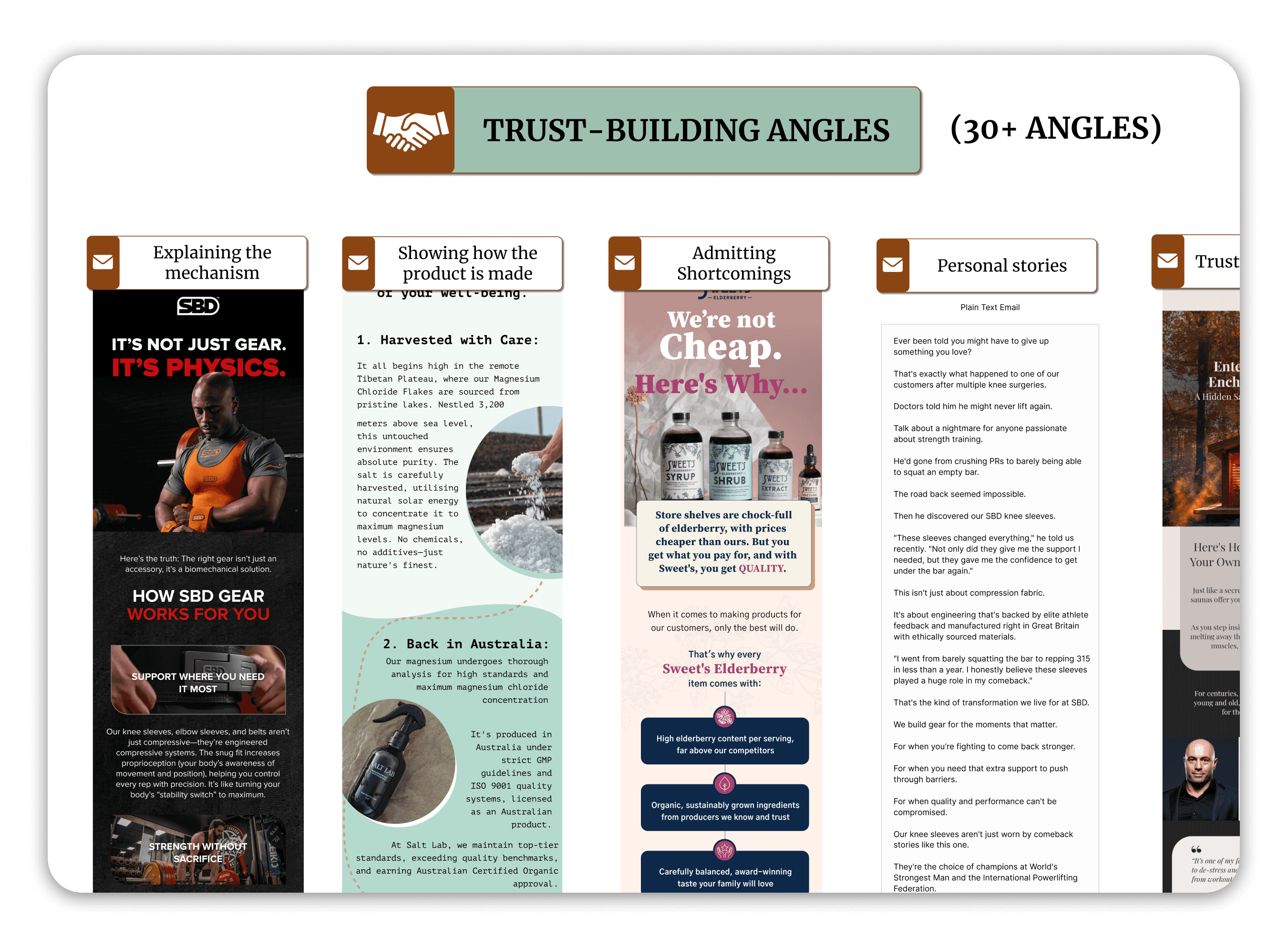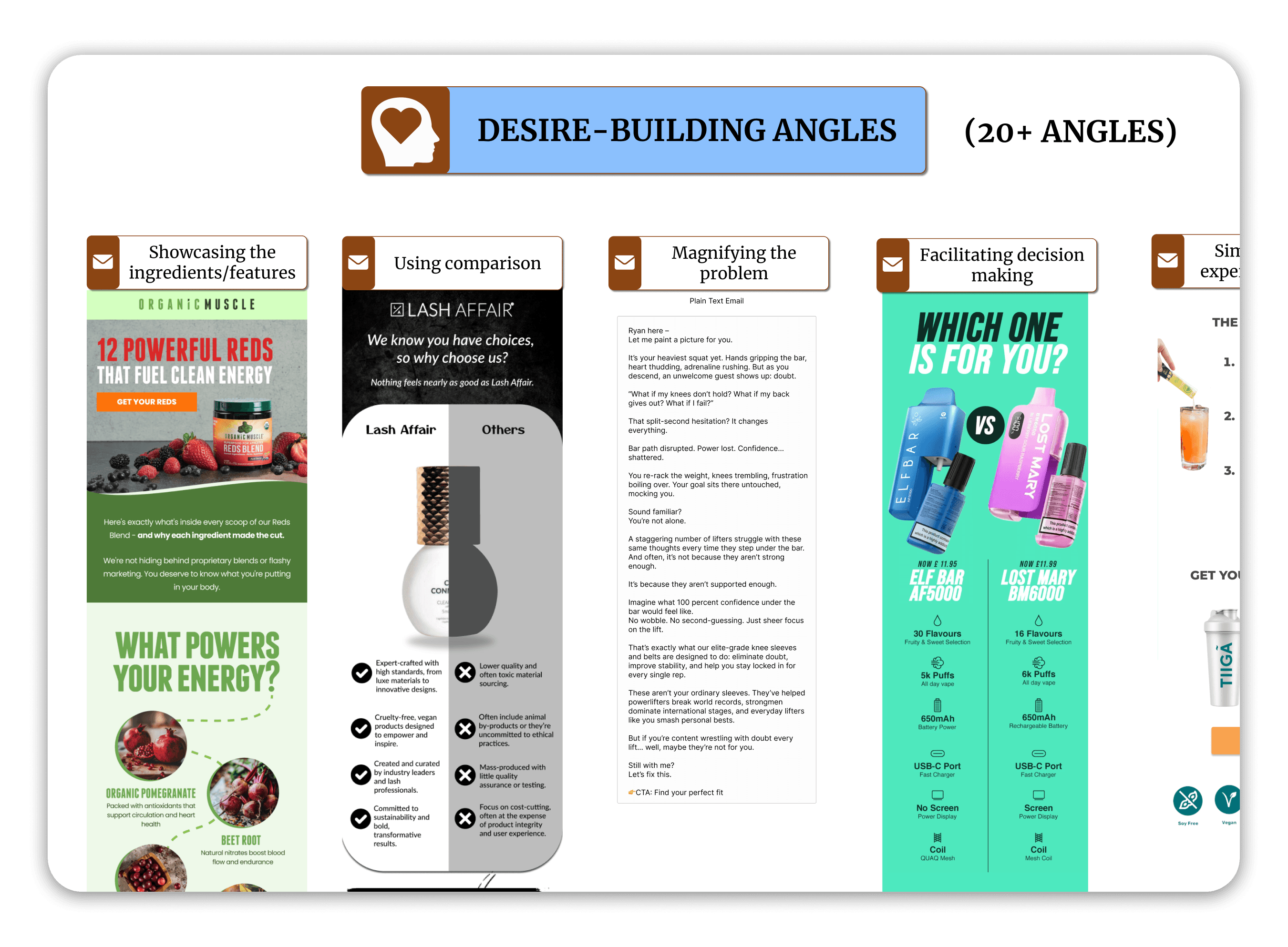 We use 50+ angles to build trust and desire with your audience. Each one becomes its own email.