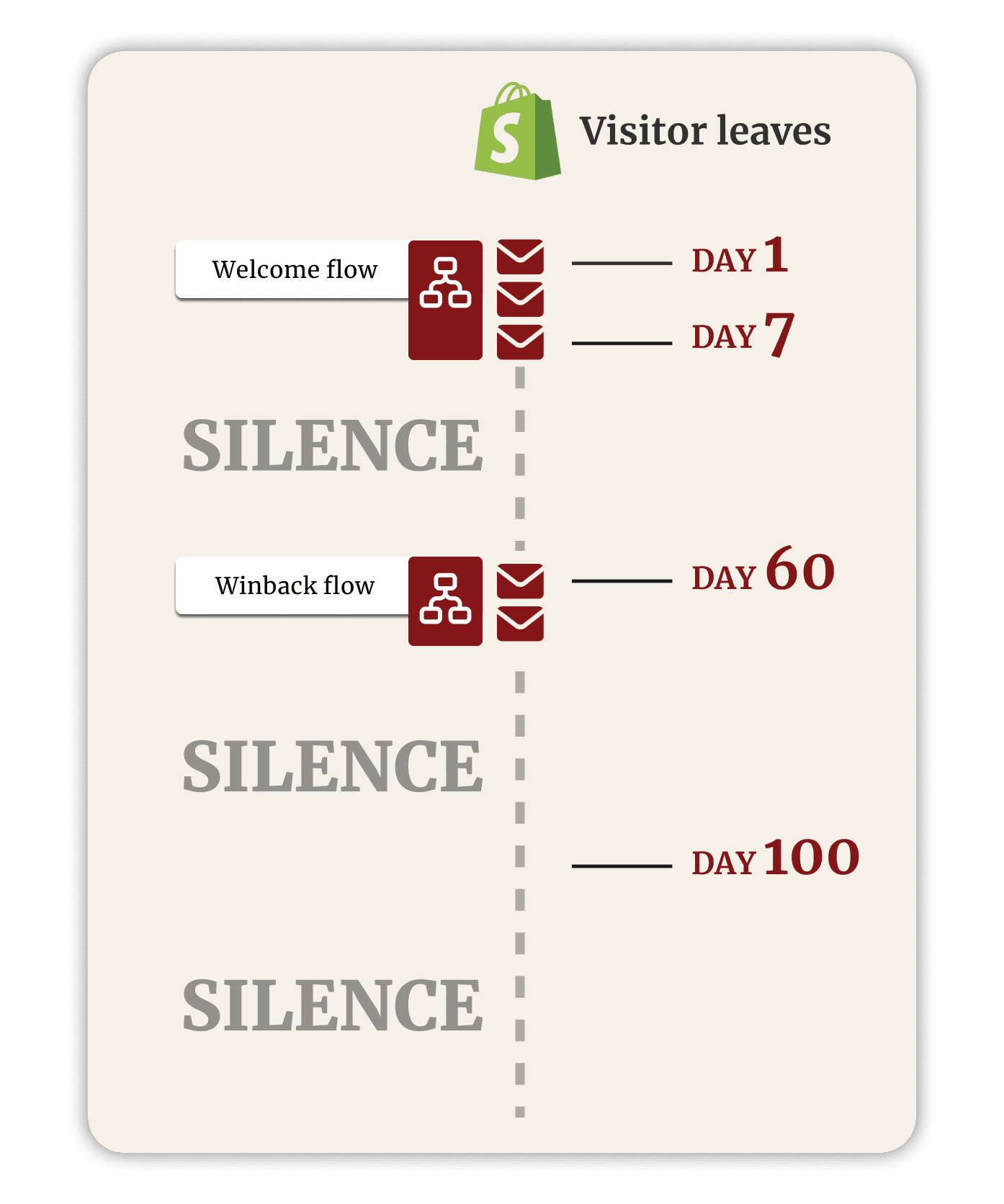 Day 1: Customer visits your site. Subscribes to popup. Leaves.